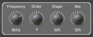 Simple Phase Rotator implementation. This can be used to slightly delay certain frequencies. The result is a reduced peak level caused by smearing the transients.