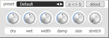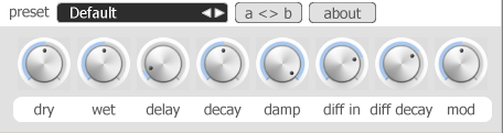 Yet another freeverb clone. Based on code from Jezar at Dreampoint and a GUI mock-up by thcilnnahoj