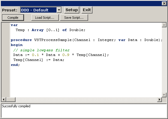 With this plugin you can write simple DSP functions in pascal script. They will be interpreted in realtime (might be quite CPU hungry though).