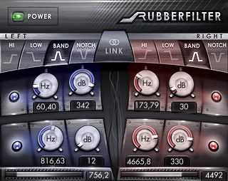 Rubberfilter provides up to 64th order butterworth filters to ‘rubber’ out frequencies. This plugin was made to be a static tool. Automation of any parameter is on your own risk.